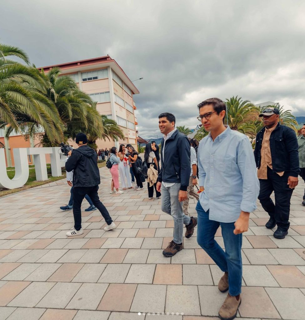 Loja, 2023. En el marco de la campaña presidencial de Otto Sonnenholzner, Carlos Emilio Larreátegui acompañó toda la contienda como Secretario Particular. La imagen corresponde a una visita a la Universidad Técnica Particular de Loja para dialogar con estudiantes.